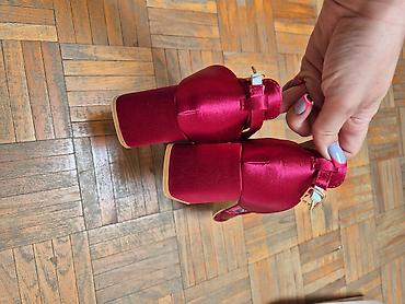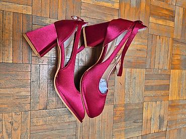 Elegantne ženske cipele na blok štiklu u boji tamnog rubina (satenski sjaj).