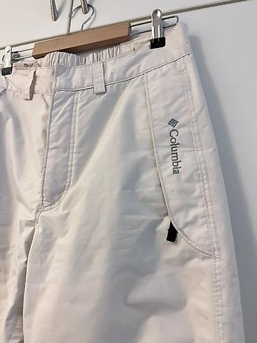 Klasične bele tehničke pantalone sa toplom izolacijom i funkcionalnim detaljima za planinu i sneg.
