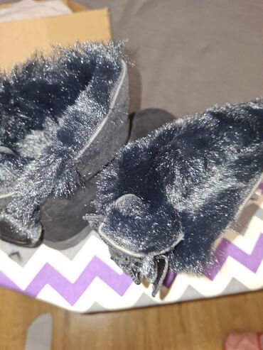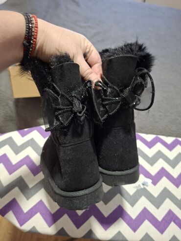 Crne zimske čizme sa krznenom postavom - Boja: crna - Visina do članka, sa petljom pozadi za lakše obuvanje - Gornjište od mekanog materijala sa izgledom antilopa - Unutrašnjost i ivice bogato pos...