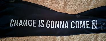 - Uz levu nogavicu veliki natpis: “CHANGE IS GONNA COME”.