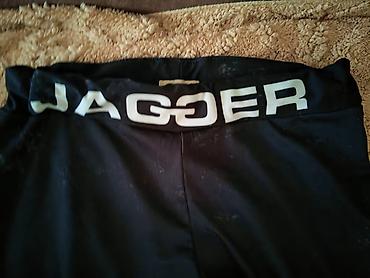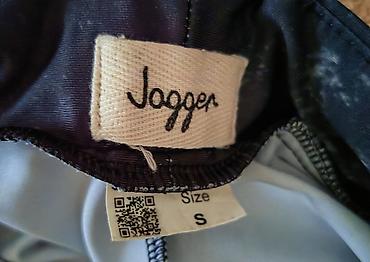 - Tamno sive sportske helanke sa širokim, elastičnim pojasom u struku (brendirano “JAGGER”).