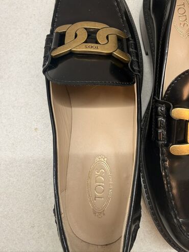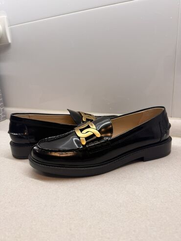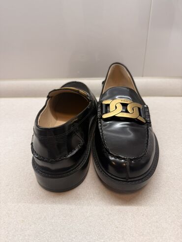 Ženske mokasine – 2 para, crne - Klasičan dizajn sa ukrasnim metalnim detaljima na gornjištu: - Par 1: masivni lančani ukras u srebrno‑zlatnoj boji. - Par 2: metalna kopča u zlatnoj boji. - Ma...