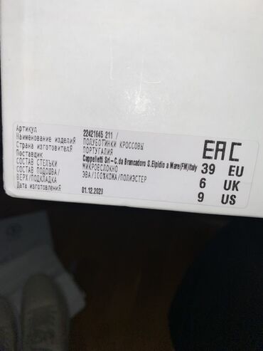 - Veličina: 39 EU (6 UK / 9 US), naznačeno na kutiji