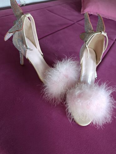 Drugi materijalSandale na štiklu sa dekoracijom leptirovih krila i perjem