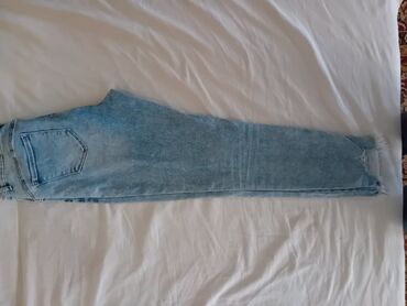 Ženske džins pantalone – širok/kombinezonski kroj - Materijal: lagan teksas (denim), prijatan za toplo vreme - Boja: srednje plava sa blagim ispranim efektom - Visina struka: srednji struk - Kroj ...