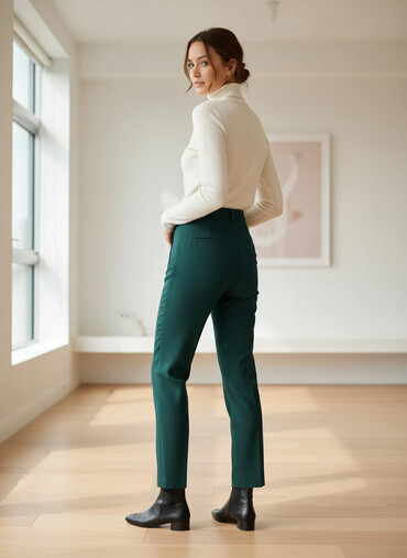 - Materijal: glatka, čvršća tkanina koja lepo pada i drži formu – pogodna za poslovne i svečane kombinacije