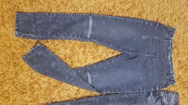 - Model 2: jeggings/helanke od rastegljivog teksasa sa elastičnim pojasom (bez rajsferšlusa), jednobojni sivi isprani izgled.