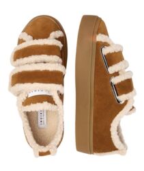 Plišane kućne papuče – topli braon model sa belim krznenim obrubom - Gornjište od mekanog materijala u toploj kamel nijansi - Bogata, mekana veštačka krzna na obodu i unutar papuče za dodatnu topl...
