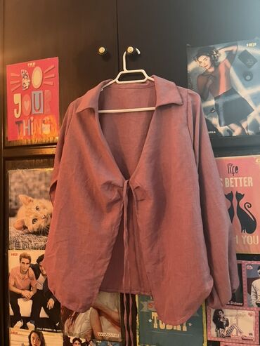 Dvodelni komplet od laganog platna u puder‑ružičastoj boji. - Gornji