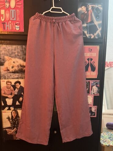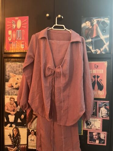 Dvodelni komplet od laganog platna u puder‑ružičastoj boji.