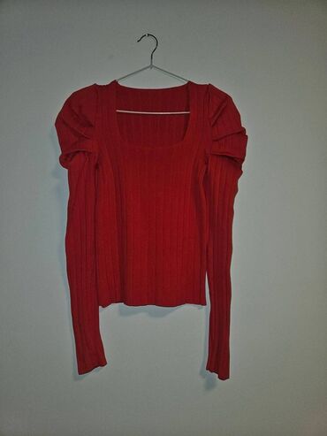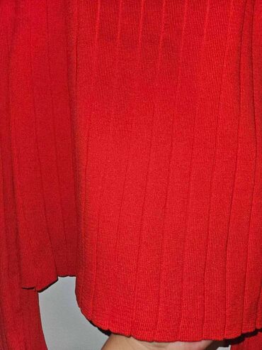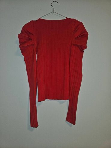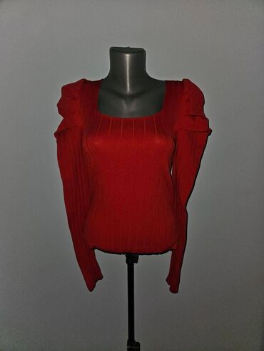 Drugi materijalCrveni ženski džemper/top od rebrastog pletiva.Trikotazna bluzica uni vel. za S,M-slabiji L.jednom nosena bez mana