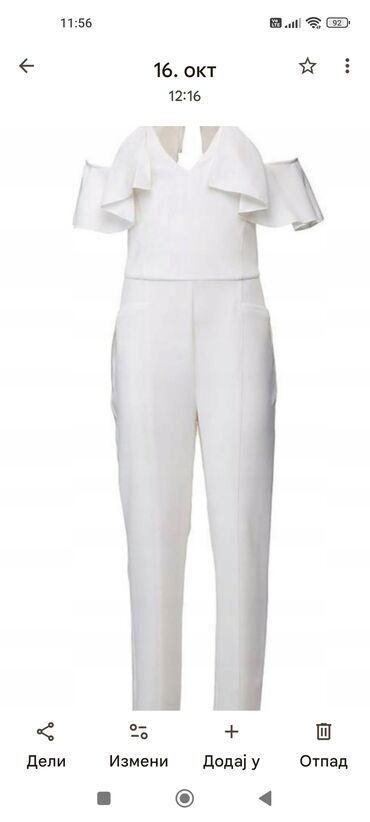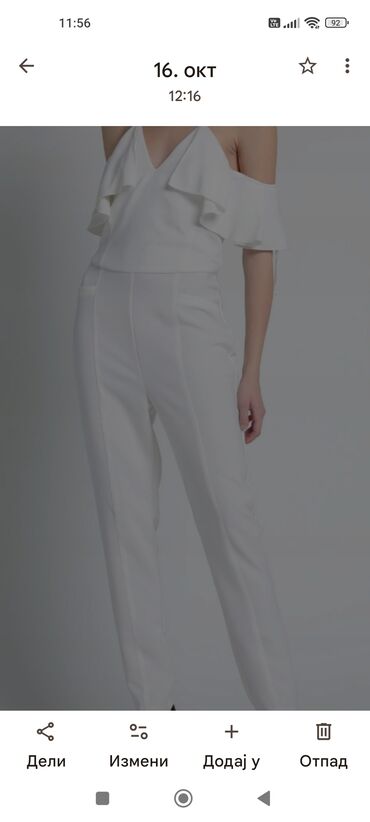- Model: off-shoulder kombinezon sa spuštenim ramenima