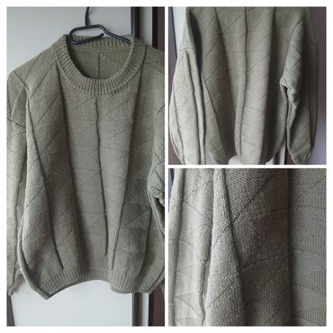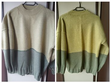 - Ravno pletenje, blok boja: svetlo bež gornji deo, maslinasto siva donja zona