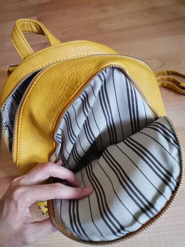 Mini ranac Marc Jacobs - Dizajn: kompaktan, zaobljen mini ranac sa prepoznatljivim zlatnim metalnim logom na prednjoj strani. - Boje: puder roze prednja strana, bočni i donji delovi u crnoj, pozad...