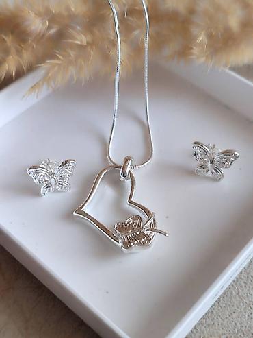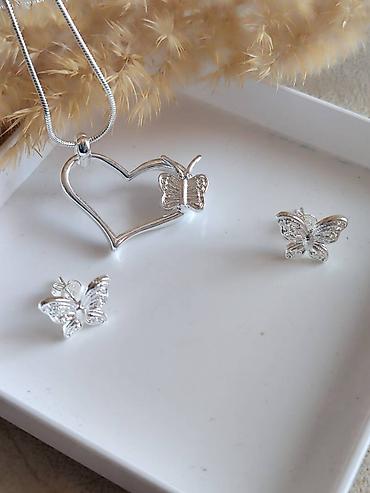 - Ogrlice sa tankim snake lancem i privjeskom u obliku stilizovanog srca ukrašenog reljefnim leptirićem