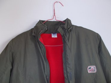 Nike Sportswear jakna sa kapuljačom - Model: Nike Sportswear (etiketa na unutrašnjosti) - Veličina: XL (158–170 cm), za uzrast 13–15 godina - Boja: bela sa tamnosivim gornjim panelom; plavi detalj...