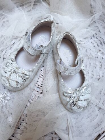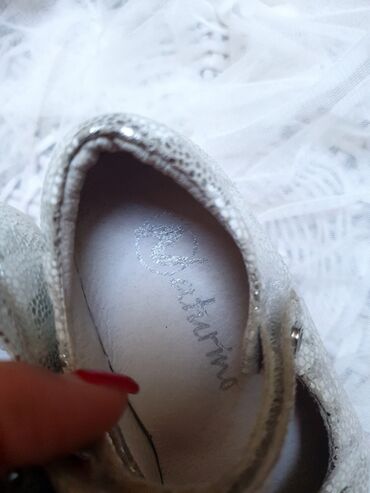 - Dizajn: reljefna tekstura sa diskretnim šljokicama, ukrasne mašnice na vrhu svake cipelice