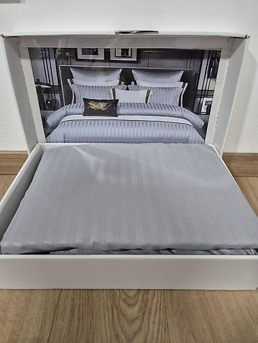- Materijal: satenska tkanina sa diskretnim prugama (damast/saten izgled, glatka i mekana na dodir)