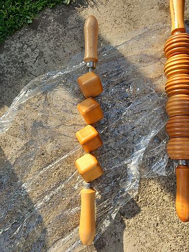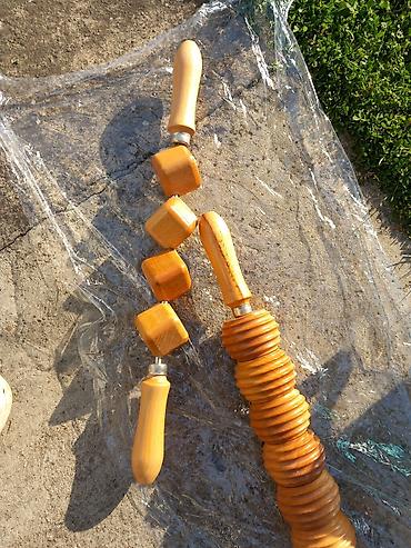 Drvene ručne masažere – set Opis: - Dva masažera od lakiranog drveta