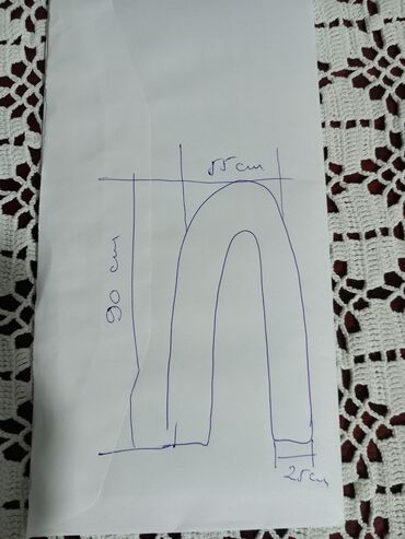 - Dimenzije: ukupna visina oko 90 cm, spoljašnja širina luka oko 55 cm, širina svake noge oko 25 cm (vidi skicu).