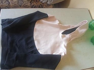 2) Dukserica sa kapuljačom, dvobojna (crna i svetloružičasta). Mekana pamučna trikotaža, klasičan kroj sa dužim rukavima i rebrastim ranflama.