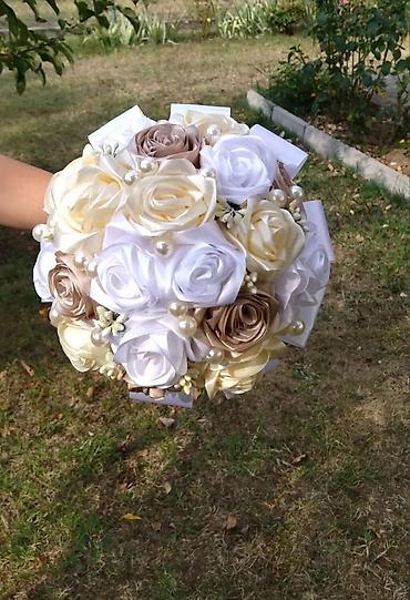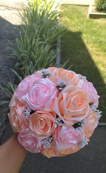 Ručni buketi od satenskih ruža – elegantni aranžmani za venčanja, mature i svečane prilike.