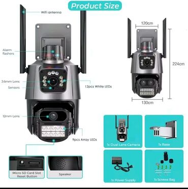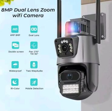 PTZ iP WIFI kamera sa 3 sočiva i alarmom 10X Zoom 8MPX Wi-Fi kamera sa tri objektiva Dva su fiksna, treći ima mogućnost rotacije za bolji pregled okoline koja se snima GARANCIJA 2 GODINE BOLJE NE...