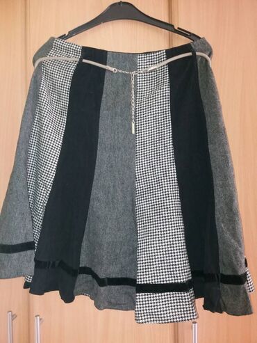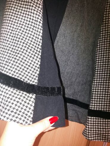 Veoma interesantna suknja od razlicitih stofova u crno-sivoj kombinaciji boja.