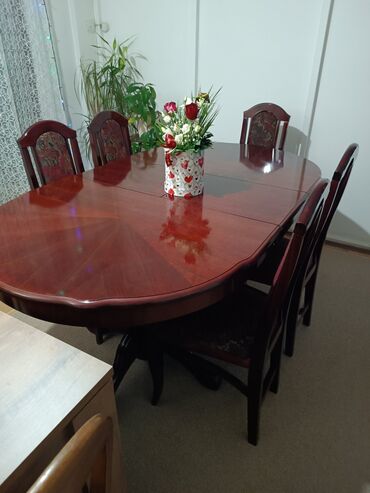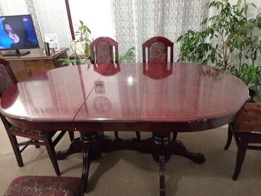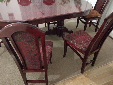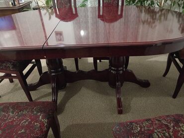 Trpezarijski set – masivan drveni sto sa šest stolica.140/180/100. 32000 din.