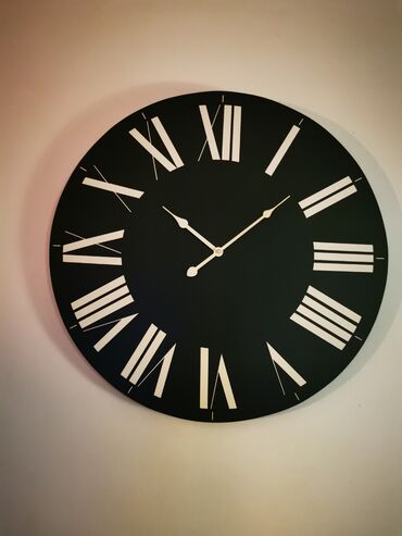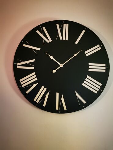 Veliki zidni sat – crni brojčanik sa belim rimskim brojevima