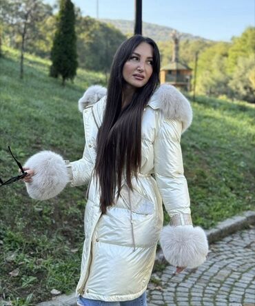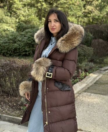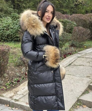 Ženska duga zimska jakna sa krznenom kapuljačom i manžetnama