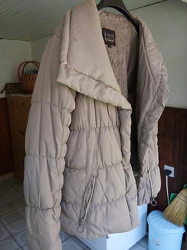 Ženska kratka jakna sa krznenom postavom (biker/aviator stil). - Spoljašnji materijal: crna eko-koža sa mat finišem - Unutrašnjost i kragna: topla bela veštačka krzna/fleece postava, vidljiva i na...