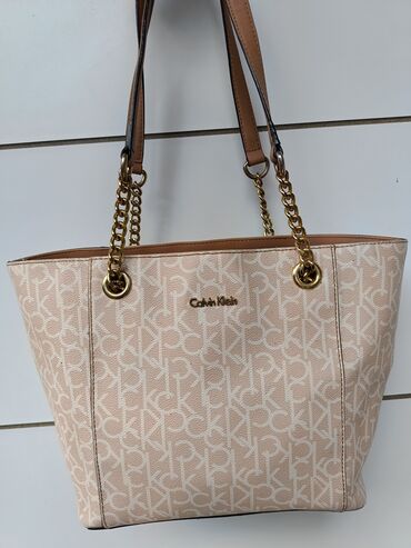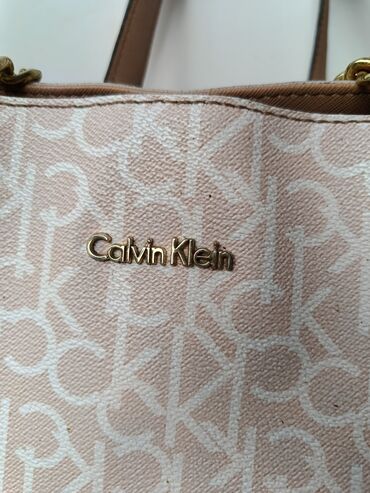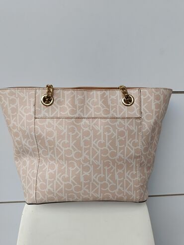 Calvin Klein tote torba – bež/ puder roze monogram (CK) print.