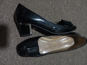Ženske salonke od prirodne kože, lak crne boje. - Gornjište: lakirana