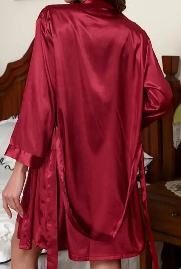 Ženski satenski kimono ogrtač, vel. L – bordo