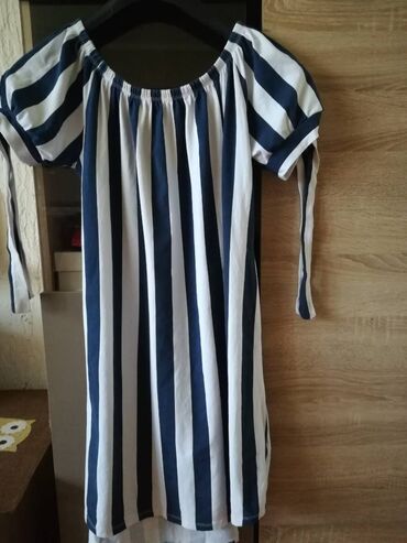 Letnja haljina, veličina M /L, lepršava, pamučna, lagana, nesvakidašnja. Kupljena u Herceg Novom i nošena samo tokom letovanja. Moderan mornarski stil vizuelno izdužuje figuru.