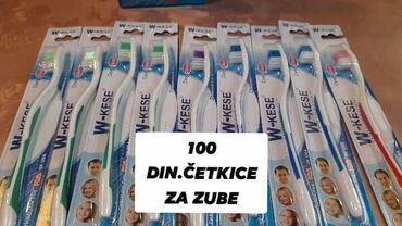 - Četkice za zube W-Kese, više boja. Cena: 100 din komad (naznačeno na slici).