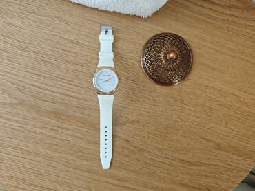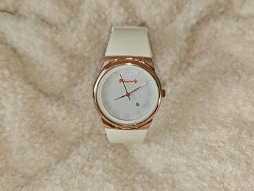 SilikonSat sa silikonskim kaišem u stilu Swatch, neboplav, sa kućištem u boji roze zlata. Nov