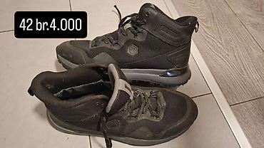 - Lumberjack planinarske/treking patike, broj 42 – cena 4.000 RSD. Crne, srednja visina za dodatnu potporu članku, robusni gumeni đon sa izraženim šarama za dobro prianjanje, ojačani prsti i pete, mrežasto-tekstilni gornjište sa pojačanjima.