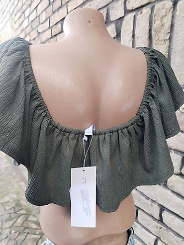 Ženska bluzica – prugasti bolero sa čvorom i farmerke - Model: kratki bolero/top koji se veže u veliki čvor napred - Kroj: široke, lepršave rukave 3/4 dužine sa spuštenim ramenima i naglašenim rev...