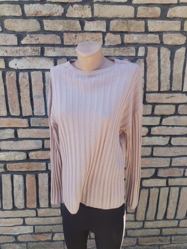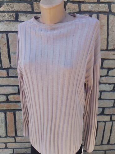 Dugački ženski kardigan u bež/boji peska sa V-izrezom. Rebrasti pleten uzorak preko celog modela, dug rukav. Kopčanje napred na dugmad u istoj boji. Priložen pojas od istog materijala za strukiranj...