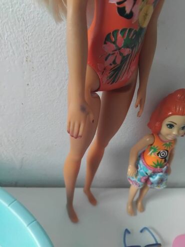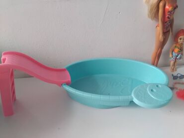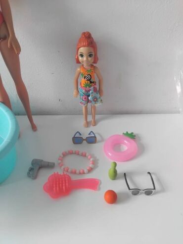 Lutka beba sa kadom i dodacima Beba koja ume da pije iz flasice i da mokri. Dolazi u bademantilu i spremna je da se kupa. Uz bebu dolazi i lepa roze kada , nosa, flasica, kozmetika, peskir pa cak i...