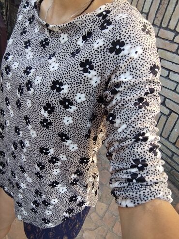 Bluzica: 2500din Elegantna ženska bluza sa dugim rukavima i zvonastim manžetnama. Model ima kvadratni/dekolte u obliku srca sa blagim naborima i ukrasnom kopčom u sredini, blago strukiran kroj koj...
