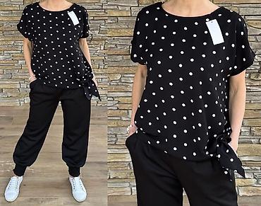 Ženska košuljica, model M (odgovara i L), zelena. - Kratki rukavi, okrugli izrez - Dekorativna preklopna traka niz sredinu prednjeg dela - Blago strukiran kroj, bočni prorezi za udobnije pristajan...