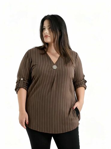 Elegantna ženska bluza sa dugim rukavima i V-izrezom. - Materijal: rastegljiva, glatka tkanina koja lepo prijanja uz telo i formira siluetu - Dizajn: duboki V-izrez, dekorativno nabrano prednje po...