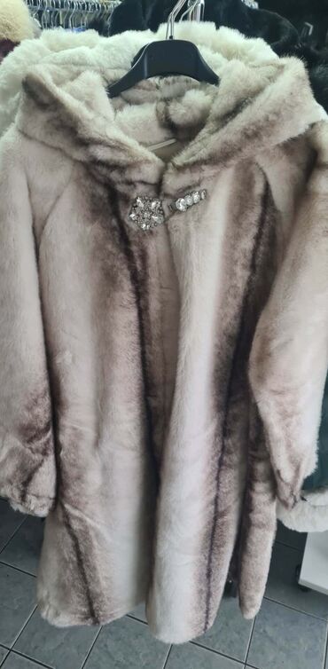 Prirodno krzno kaput – veličina L - Materijal: prirodno krzno, bogata, tamno‑braon nijansa sa prirodnom šarom - Kroj: klasičan, ravnog pada do ispod kukova - Kragna: široka, mekana - Postava: glat...