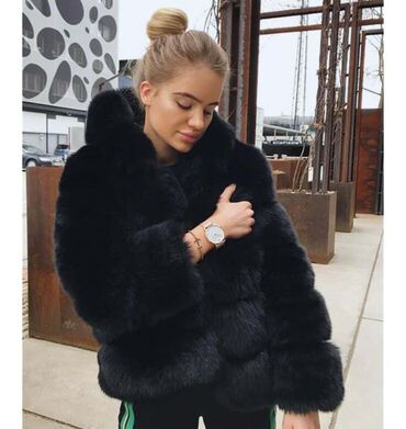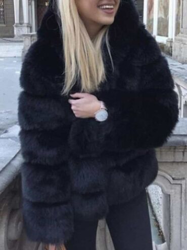 Crna ženska jakna od veštačkog krzna sa kapuljačom. Detalji: - Materijal: mekano, gusto veštačko krzno sa sjajnim finišem - Boja: duboka crna - Kroj: kraća dužina, blago boxy silueta - Zatvaranje:...5 000 RSD