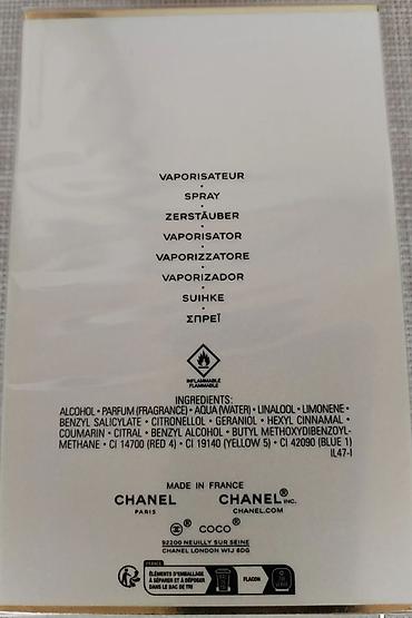 - Ambalaža: elegantna bela kutija sa zlatnim detaljima i CHANEL logom; zapečaćeno celofanom
