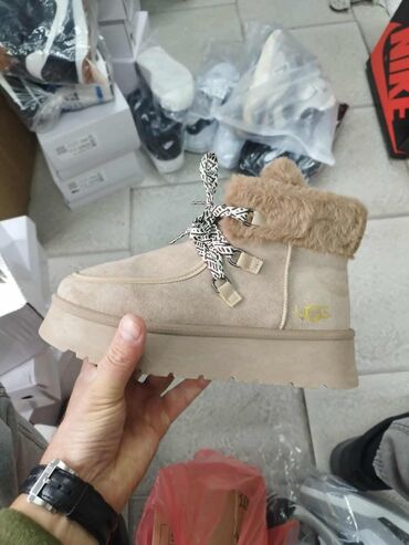 Ženske zimske patike/čizme sa platformom - Boja: topla kamel/smeđa sa belim detaljima - Gornjište: kombinacija brušene kože/velura i mrežastog tekstila za bolju prozračnost - Unutrašnjost: mekan, ...