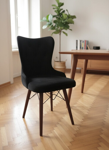 - Presvlaka: meka crna tkanina/velur, prijatna na dodir, sa diskretnim dugmadima na naslonu